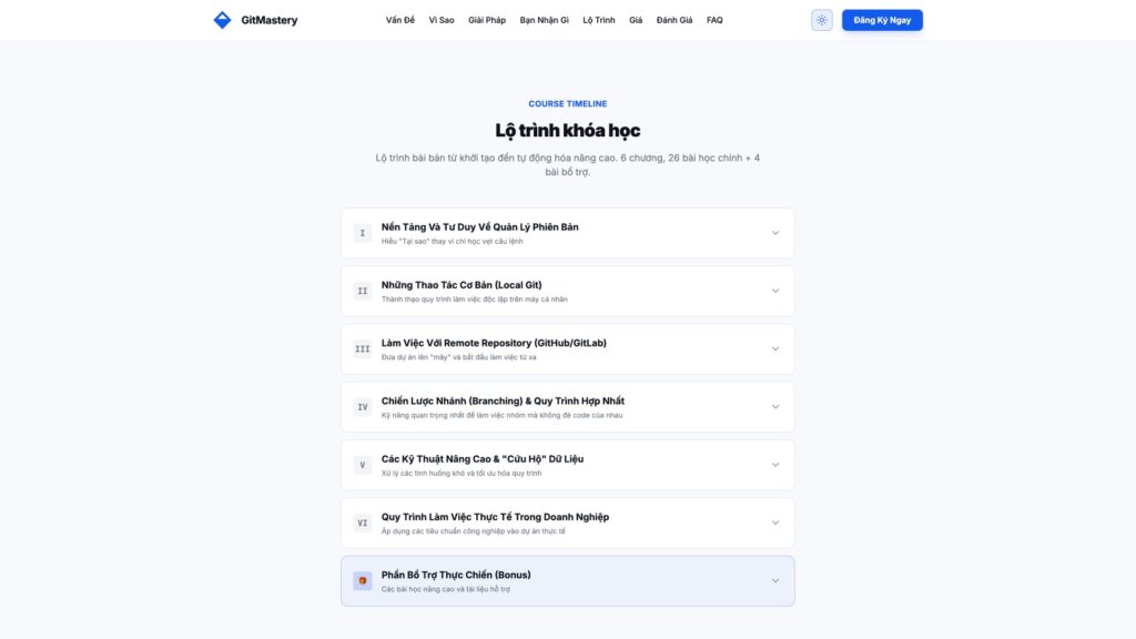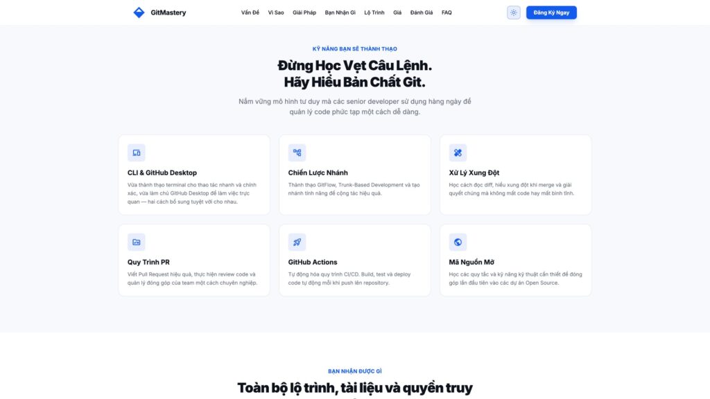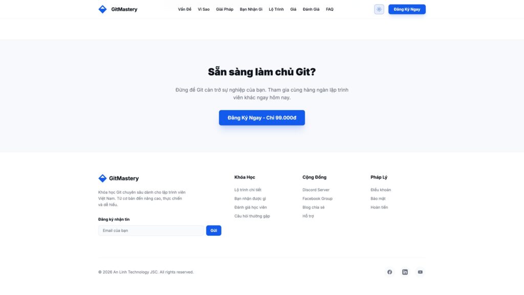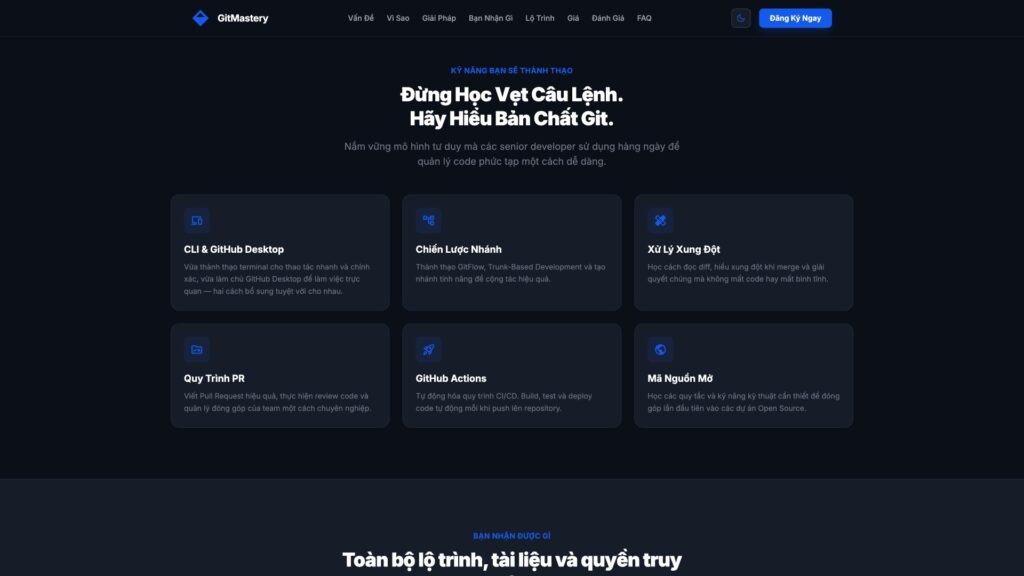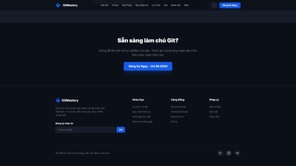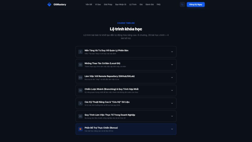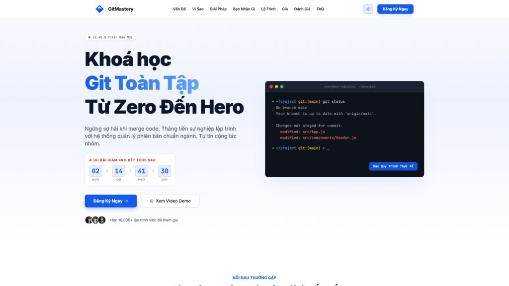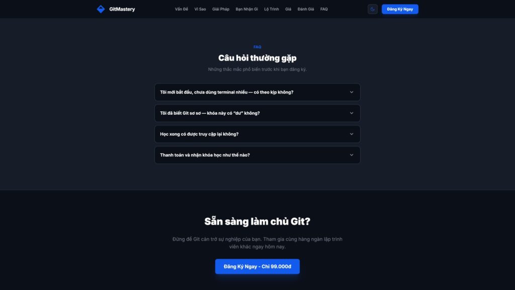 Bạn đang chuẩn bị ra mắt một khóa học về IT, Lập trình (Git, React, Nodejs…)? Bạn muốn giao diện website phải toát lên sự chuyên nghiệp, chuẩn “dân công nghệ” nhưng lại không muốn tốn 10-15 triệu và chờ đợi hàng tuần để thuê dịch vụ thiết kế?